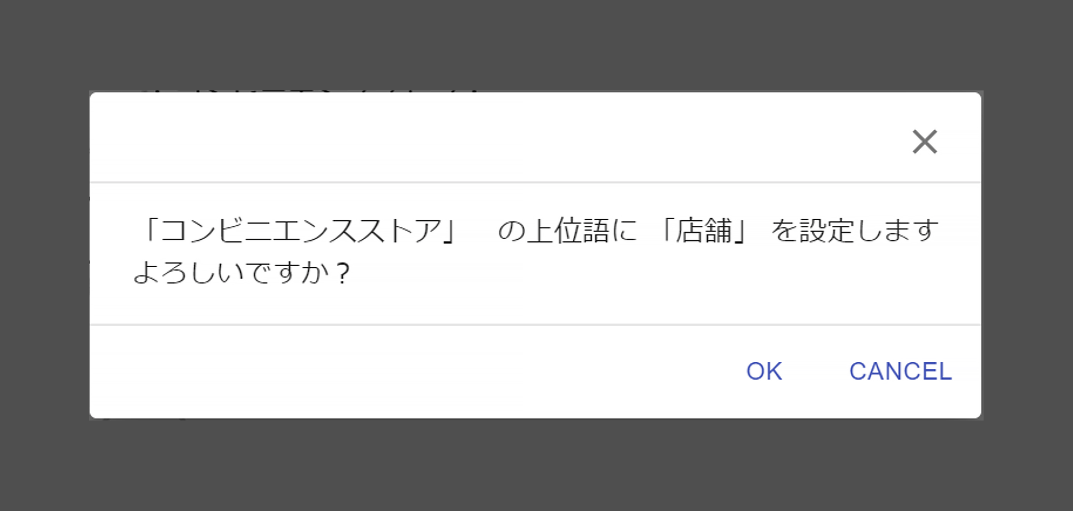 同義関係線をドラッグして引っ張りながら”コンビニエンスストア”の上でマウスボタンをはなすと、次のようなダイアログが表示されます。